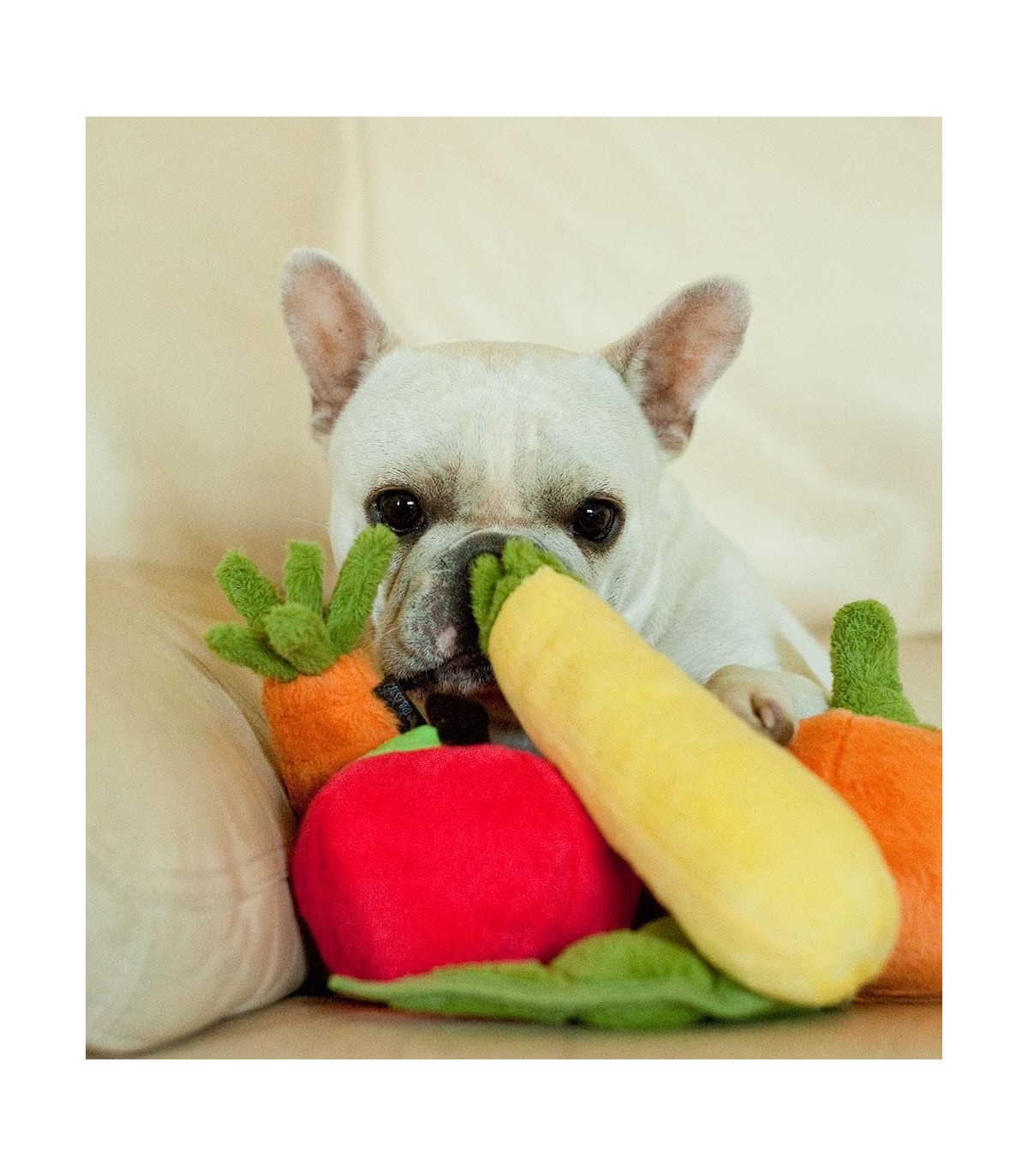 It is such a loving stuffed animal that your dog will want to take it everywhere, even sleep next to it. If you want, there are more vegetables available that you can add to the cart to have the complete pack.