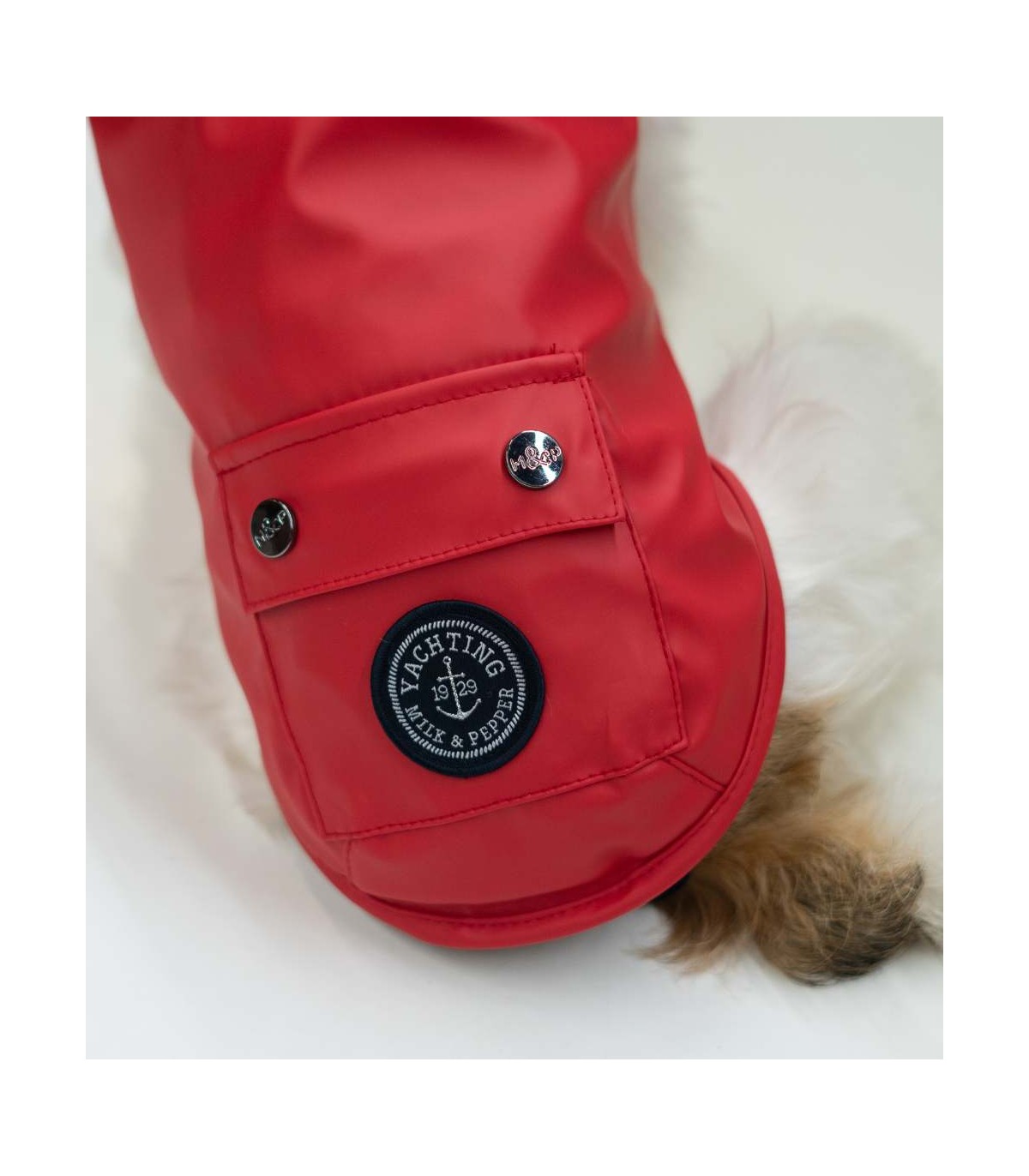 Si al consultar esa Guía de Tallas, compruebas que tu perro necesita una talla más grande, tenemos el Impermeable Tribord Rojo que abarca las tallas 45, 50 y 55.