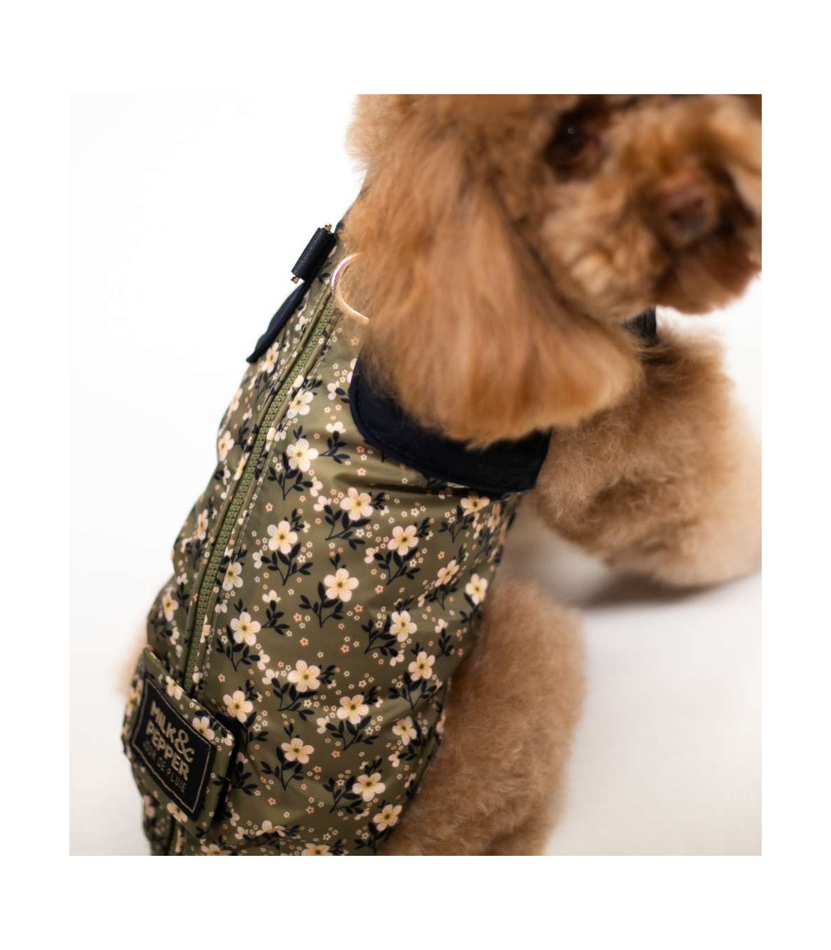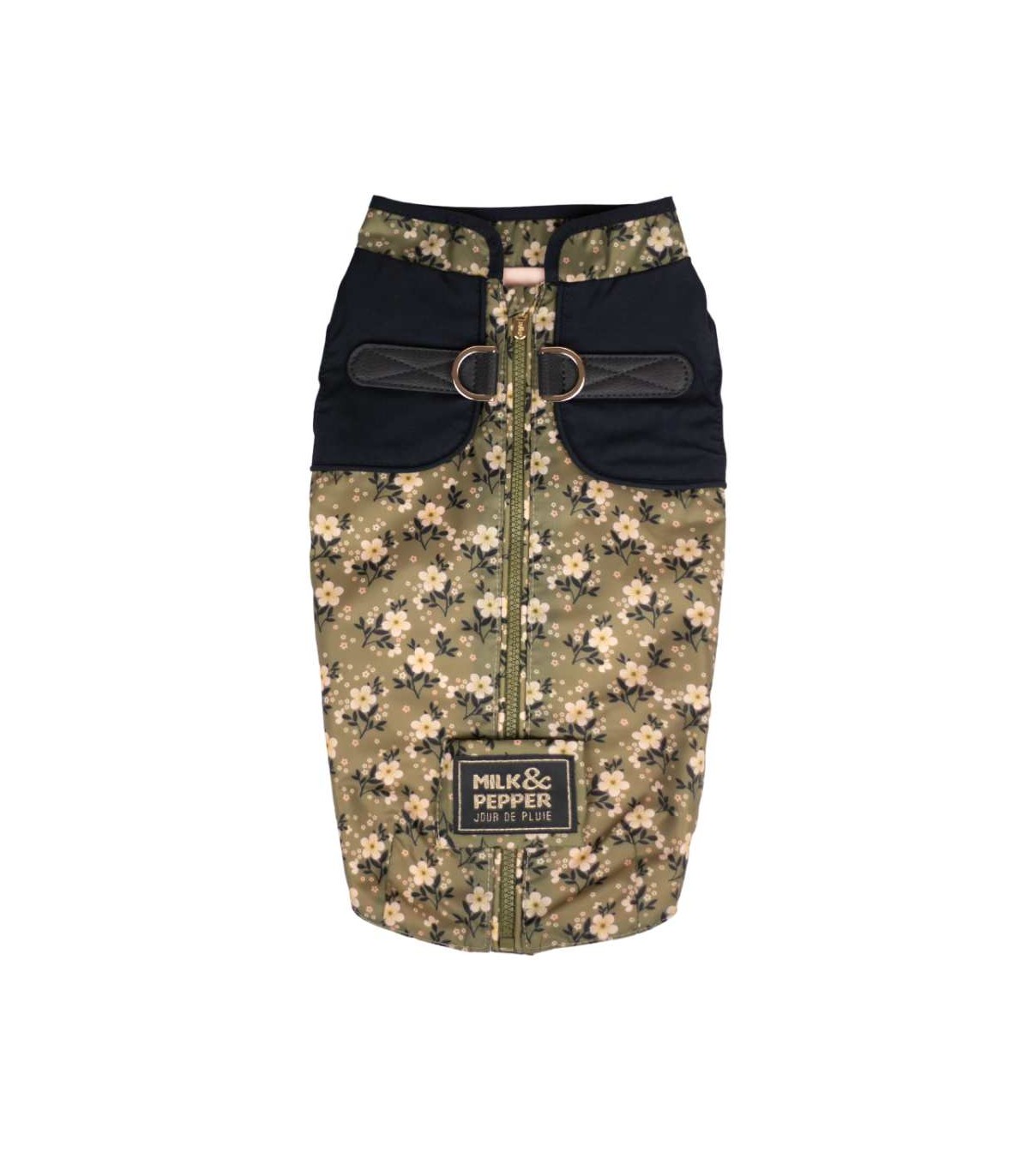Impermeable con arnés incorporado para perro de la marca Milk & Pepper.