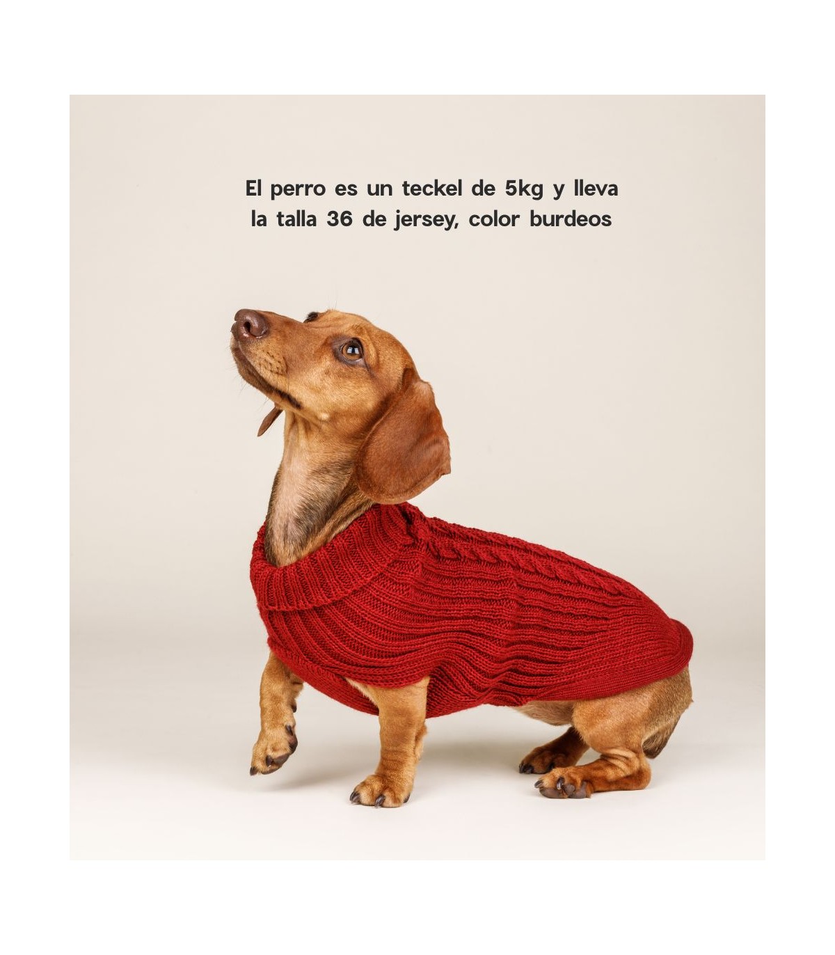 Está disponible en muchos colores y en tallas grandes y pequeñas para ajustarse a todos los tamaños. Por favor, consulta la Guía de Tallas de este jersey para acertar con la talla que tu perro necesita. Al ser elástico y estrecho, es especialmente ideal para teckels y perritos con el cuerpo alargado. ¡Por fin un jersey que les queda perfecto!
