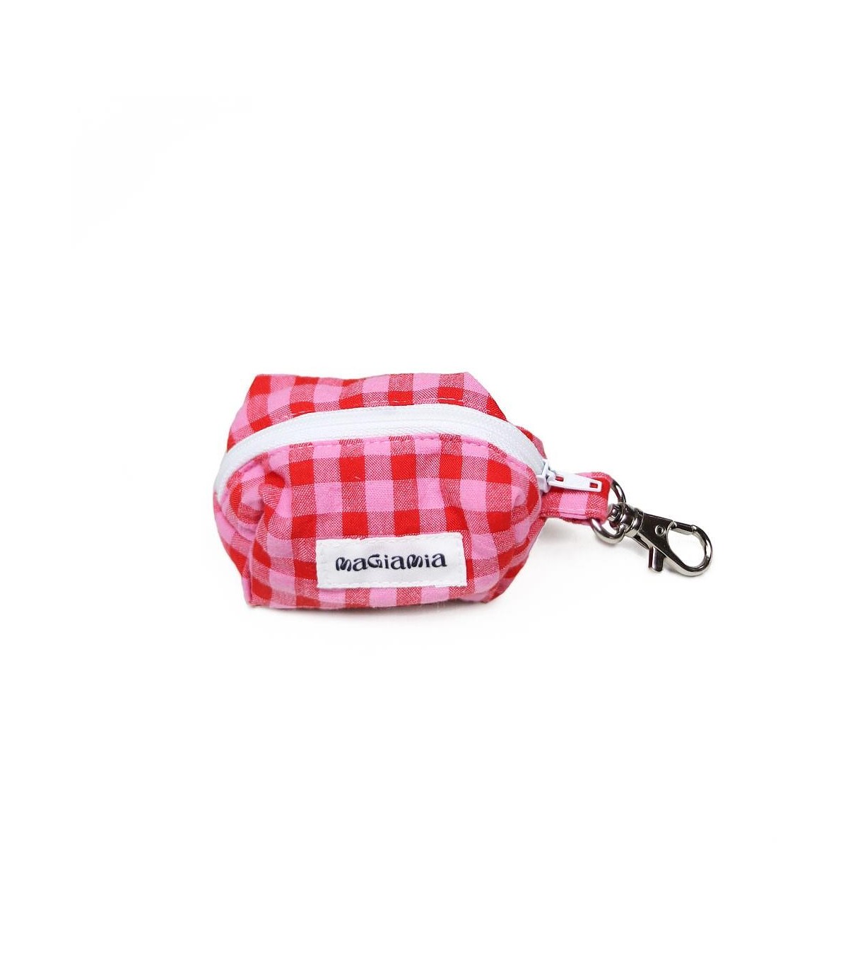 Este portabolsas hecho a mano con tejido 100% algodón es el accesorio perfecto para la colección con el mismo estampado de la marca.