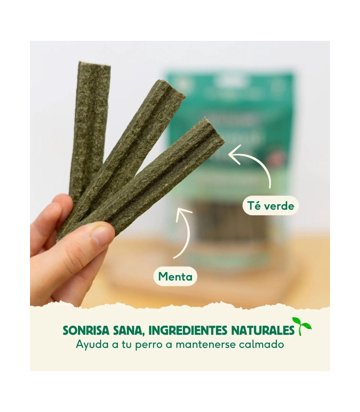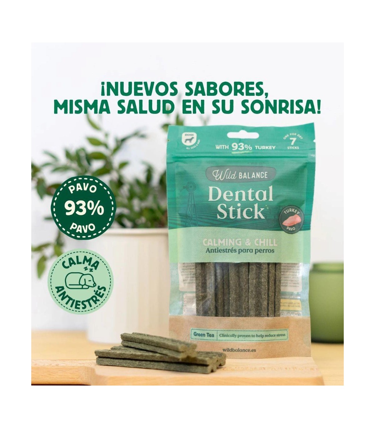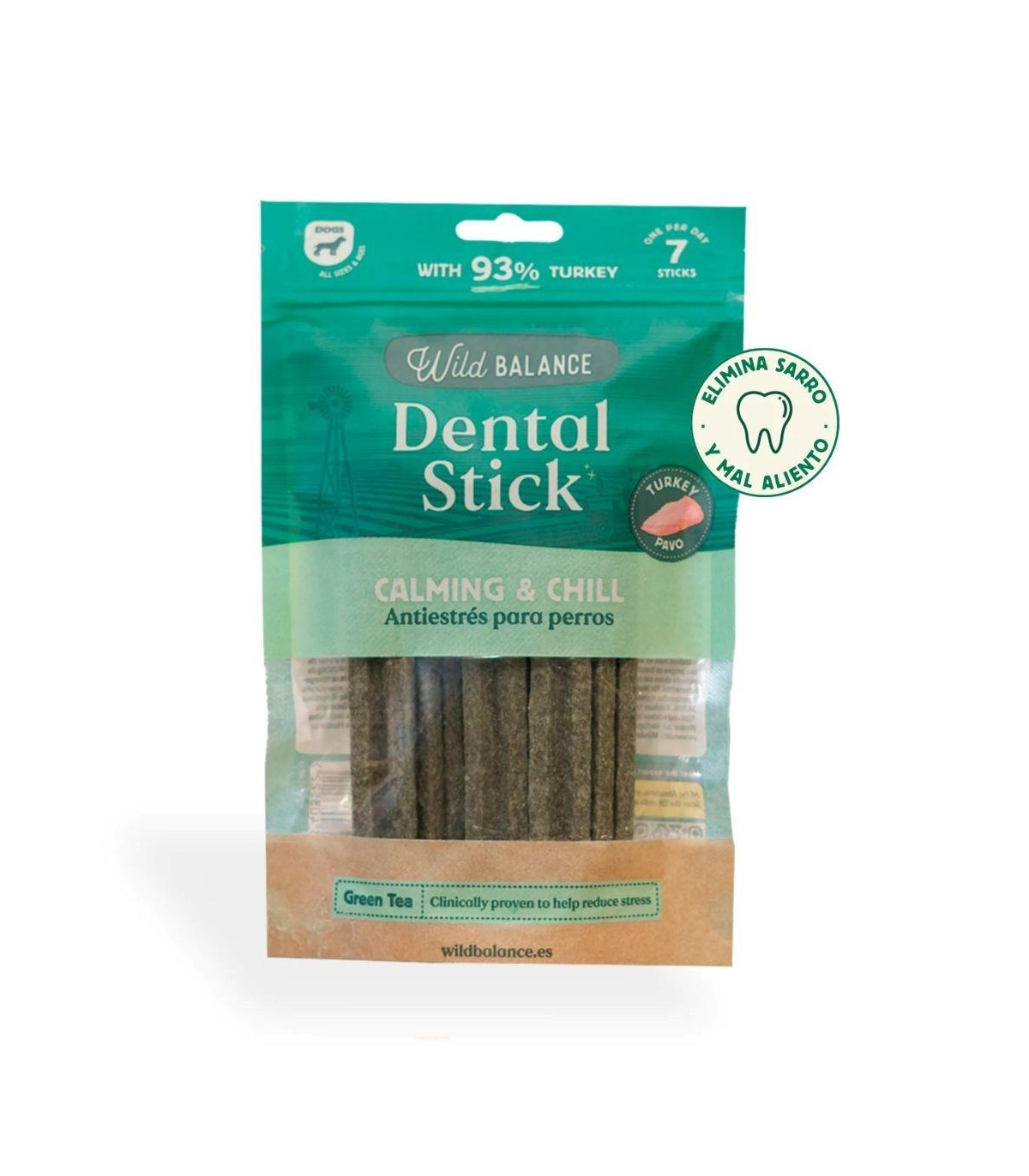 Cada dental stick está compuesto por un 93% de pavo deshidratado, té verde y menta seca, una combinación perfecta para mantener la salud bucodental y aportar una sensación de calma en situaciones de estrés, como tormentas, visitas al veterinario o viajes. Su textura ayuda a limpiar los dientes de forma eficaz y entreteniendo a tu perro al mismo tiempo. Además, su delicioso sabor a carne los convierte en una opción irresistible para cualquier peludo.
