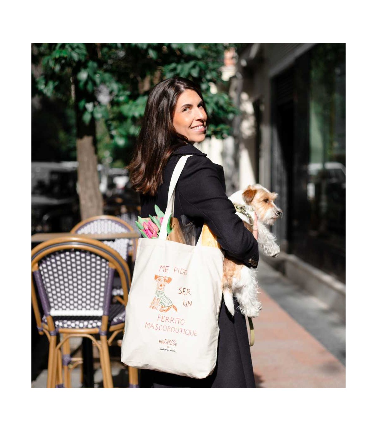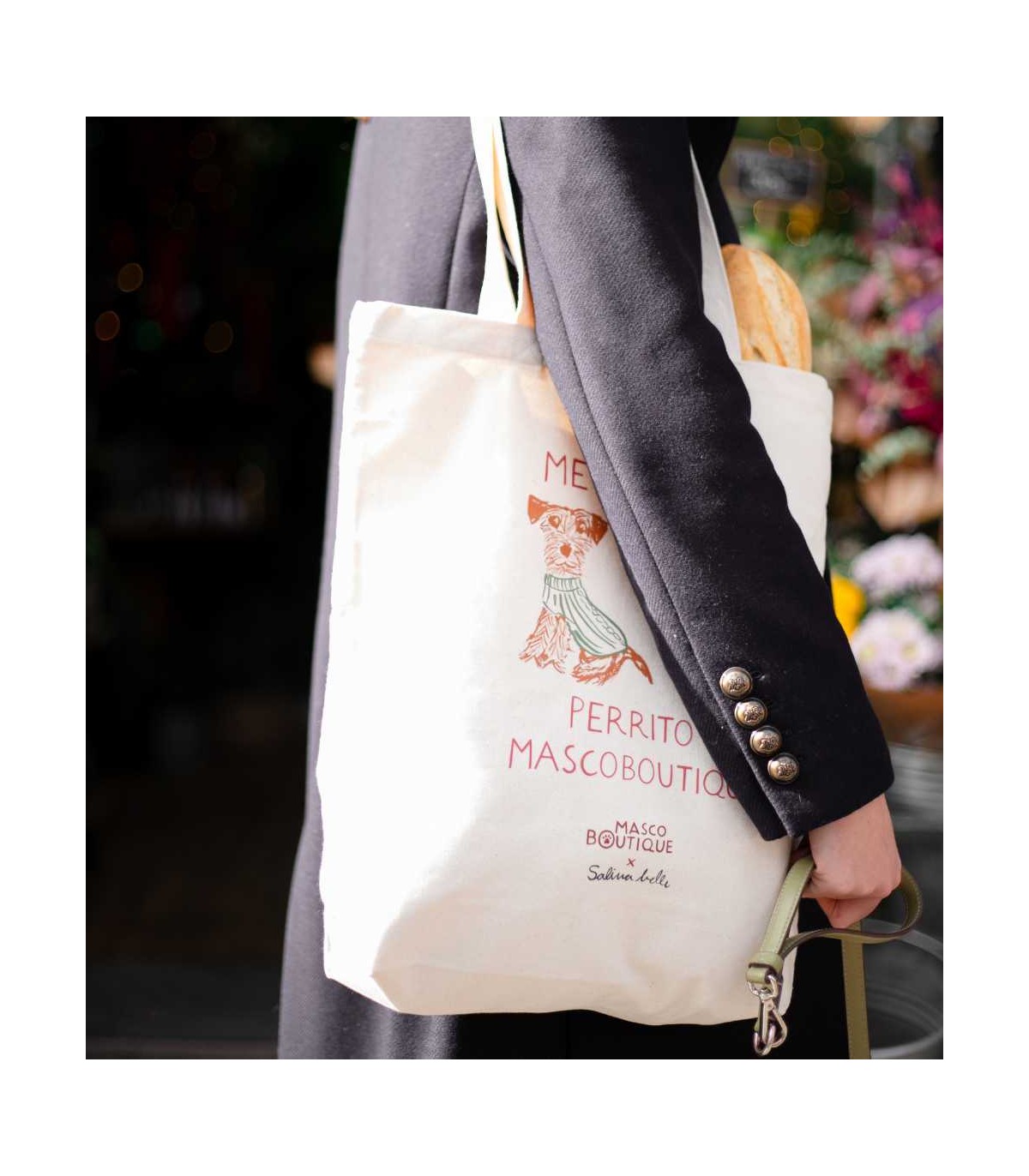 Tote Bag multifuncional con diseño exclusivo para Mascoboutique por la ilustradora Salina Belle.